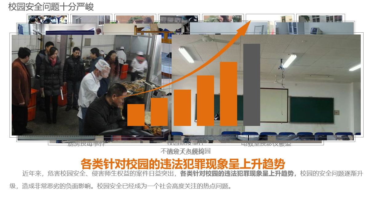 目前校园安防主要以视频监控和一代报警为主要技防手段,功能相对单一,仅起到事后追究及视频查证的作用,难以实现真正意义上的“校园平安”,也难以为教育主管部门提供科学、可视化的监管手段。